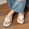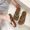 Square head plaid thick-soled girls' flip-flops fashionable summer versatile design toe vacation wedge slippers sandals
