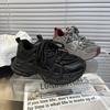 Sheepskin version~ fashionable mesh splicing thick-soled heightening sports and leisure shoes dad shoes women's new leather muffin shoes