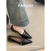 Sheepskin version beaded round head flat-soled single shoes women's shallow mouth one-pedal shoes soft-soled Mary Jane shoes