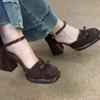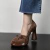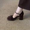 French Vintage High Heels Women's New 2025 Small Size Bow Knot Slip-On Thick Heel Single Shoes Round Toe Polyurethane Cushioning