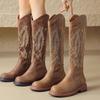 New Style Shoes for Women High Quality Embroidery Knee-High Women's Boots Winter Retro Western Boots Round Toe Low Heel Shoes