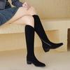 Large Size Retro Knee High Boots 2024 Spring and Autumn New Chunky Western Cowboy Boots Women's Black Pointy Toe Knight Boots