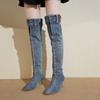 Retro Woman Pointed Toe Blue Denim Fabric Over-The-Knee Knight Long Boots Autumn Winter Sexy Slim Western Cowboy High Heel Shoes