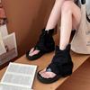 Platform Shoes Fashion Womens Boots Summer Thin Denim Pinch Toe Short Boots Design Cool Boots Women Denim Sandals Ladies Shoes