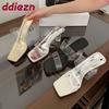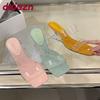 Fashion Fashion Transparent Heels Slippers Shoes For Women Footwear Square Toe Ladies Medium Heels Slippers Shoes Female Slides Sandals