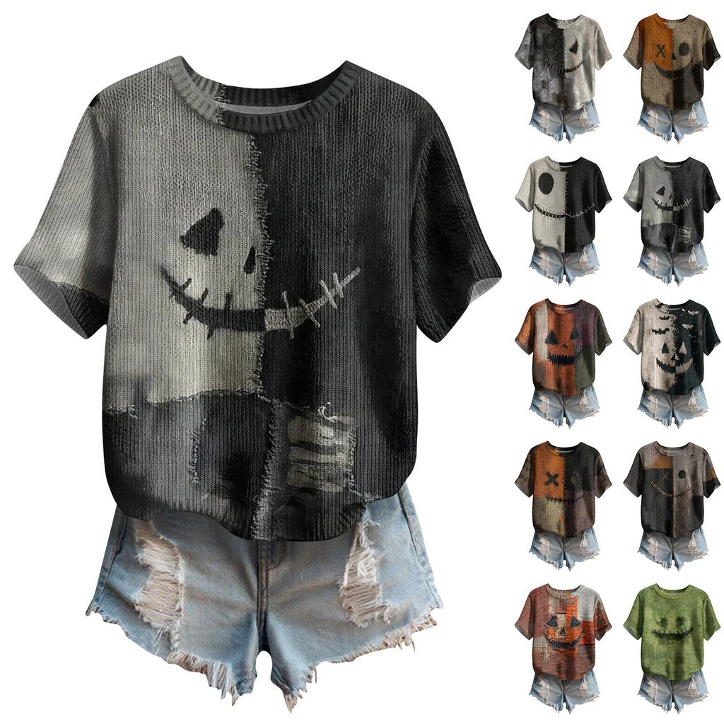 Women's Cute Sweater Knitted Fashion Casual Round-neck Short-sleeved Cozy Print Top
