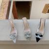 2025 nové špičaté křišťálové mašle s kamínky průhledné tašky hlava sandály na nošení silný podpatek poloviční pantofle letní dámské boty