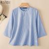 ZANZEA Women Casual Stand Collar Loose 3/4 Sleeve Stripe Blouse