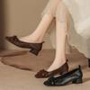 Fashion heels women's bow color matching leather small leather shoes women's one-pedal casual Mary Jane women's shoes