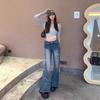 Autumn Winter Loose Casual Embroidery Wide Leg Jeans Women Fashion All-match Straight Denim Pants Trousers