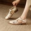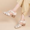 Summer new retro woven sandals first layer cowhide soft leather sandals soft sole bag head thick heel women's shoes