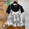 ZANZEA Women Casual Round Neck Patchwork Loose Short Sleeve T-Shirts