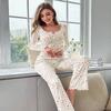 Long-sleeved trousers with small floral print and rolled-edge casual pajamas and home clothes set