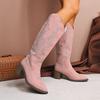 Fashion Women Embroidery Knight Boots Women Retro Square Toe PU Leather Knee High Boots Female Autumn Winter Western Cowboy Botas Mujer