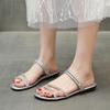 -Women's shoes cool slippers women's summer new wear rhinestone sandals one-word low-heeled flat slippers