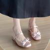 Fashion 2025 spring cute sweet Bowknot Mary Janes for Women vintage Silk Med Heels pumps Ladies Banquet Wedding Single Shoes Mujer