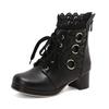 Fashion Autumn Winter Women Lolita Boots Japanese Sweet Faux Leather Shoes Ruffle Trim Lace Up Princess Lolita Cosplay Mid Calf Boots