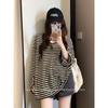 Letter Printed Striped Women's T-shirt Round Neck Minimalist Long Sleeved Pullover New Korean Loose Autumn Woman Top