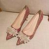 Fashion Shiny Crystal Buckle Luxury Wedding Shoes Women 2024 New Slip On High Heels Pumps Woman Pointed Toe Thin Heeled Party Shoes