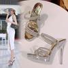 Fashion PVC Transparent Crystal Sandals Women Gold Silver Wedding Holographic Summer Jelly Shoes Ladies Thin High Heels Sandalias Mujer