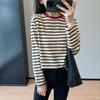 A Stylish Striped Knitted Sweater for Women's Autumn, Featuring A Retro and Laid-back Style, Long-sleeved Short Top
