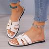 Fashion Women's Summer New PU Leather Simple Solid Color Outdoor Slip-on Flat Shoes 2025 Daily Casual Open-toe Beach Women's Roman Shoes
