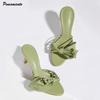 ZARA Fashionable Comfortable Floral Decorated High Heel Slide Sandals Women sandals Green 11310610069