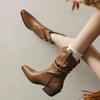 Fashion 2025 New Style High Heels Pleated Boots for Women Autumn Winter Leather Western Boots Woman Thick Heeled Boots