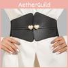 Faux Retro Trendy Leather Belt With Metal Pin Closure Bold Decorative Elements