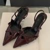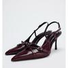 Fashion Elegant Metal Buckle Women Pumps Sexy Pointed Toe Slingbacks Thin High Heels Sandals High Quality Leather Luxury Designer Heels