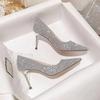 Fashion New Pointed Stiletto High Heels Shoes Sexy silver sequins Shallow Mouth Single Shoes Women's Work Dress Shoes High Heel Pumps