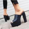Fashion New Popular Sexy High Heels Women Slippers Platform Summer Slides Mules Shoes Leather Black White Red Sandals Large Size 35-43
