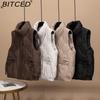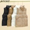 BITCED Down-Filled Cotton Vest for Women Stand-Up Collar, Short-Length Autumn/Winter Loose-Fit Cotton Jacket Lightweight Vest Outerwear