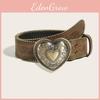 Heart Retro Shaped Alloy Buckle Leather Belt Rivet Embellishments Young Adult