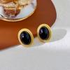 The contrast between the deep resin and metallic accent creates eye catching dimension, making these comfortable ear studs a wardrobe accessory conversation starter.