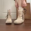 Tassel design mid-tube fashion boots autumn and winter retro fairy style thick heel outer wear versatile height-increasing short Martin boots