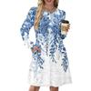 Women's Long Sleeve Pleated Round Neck Vintage Floral Print Casual Dress With Pockets