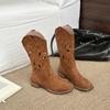 Fashion retro hollow embroidered western cowboy boots women's 2025 summer new versatile outer wear thick heel knight boots
