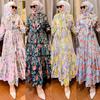 Women's long-sleeved V-neck bohemian print long dress