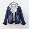 Γυναικείο παλτό μόδας casual μακρυμάνικο με κουμπιά τζιν βελούδινο μπουφάν