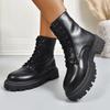 Women Platform Boots Black Non-slip Motorcycle Boots Lace Up Boots 2024 Winter Women's Warm Shoes Fashionable Walking Work Boot