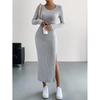 Μακρυμάνικο Πλεκτό Μακρύ Φόρεμα με Σκίσιμο και Στρογγυλή Λαιμόκοψη για Γυναίκες