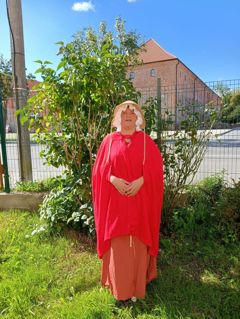 Took the last item. The cloak is wide and fit me quite well for my size 56. Soft red material. The cloak had to be altered - lined with a warm lining. At the same time, I sewed up the armholes. They were small for me, as a tour guide. But I have no complaints about the manufacturer. It's just comfortable to wear the cloak.