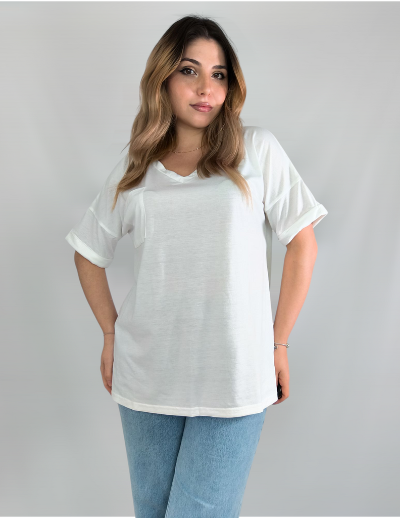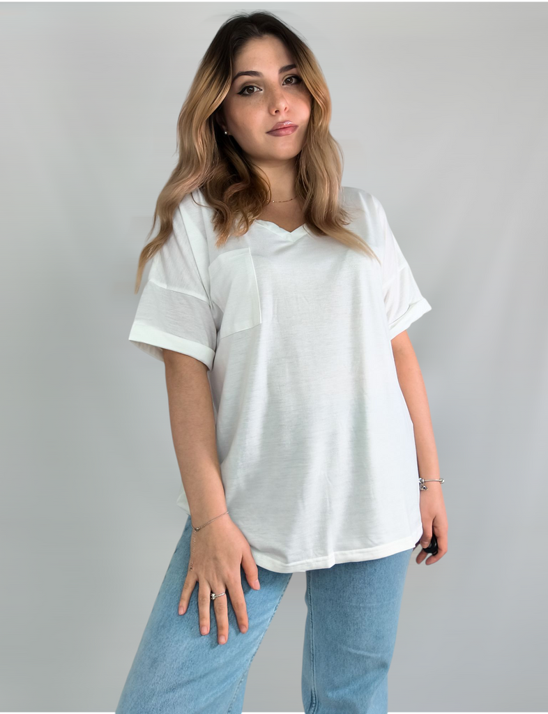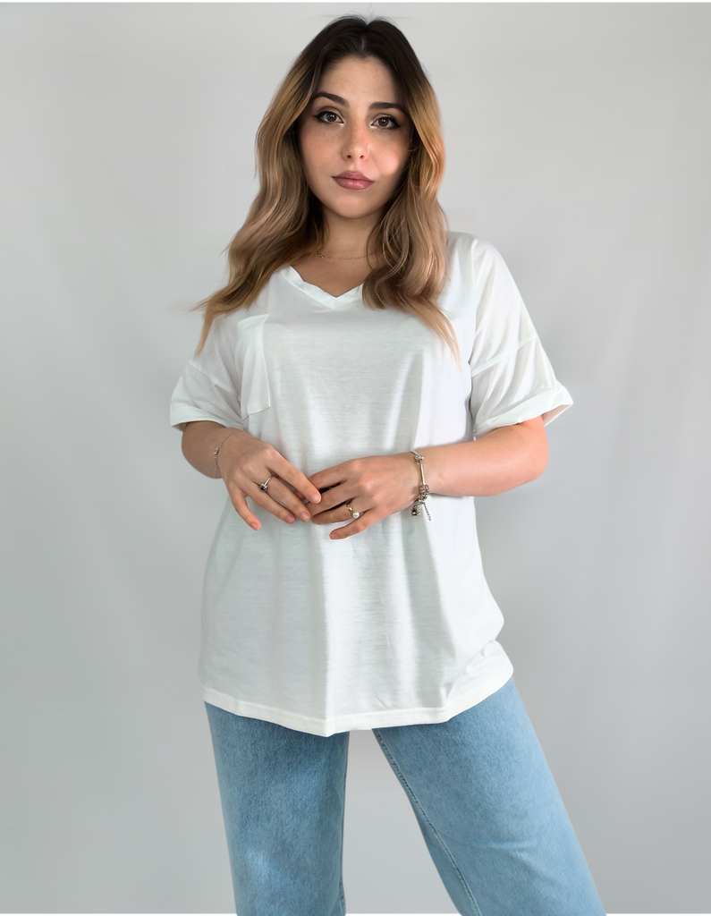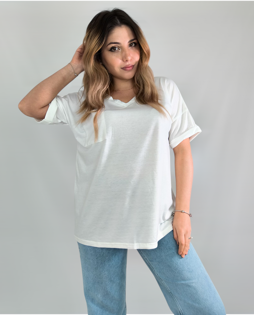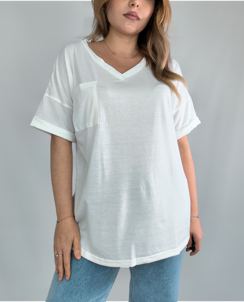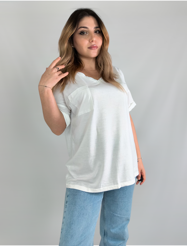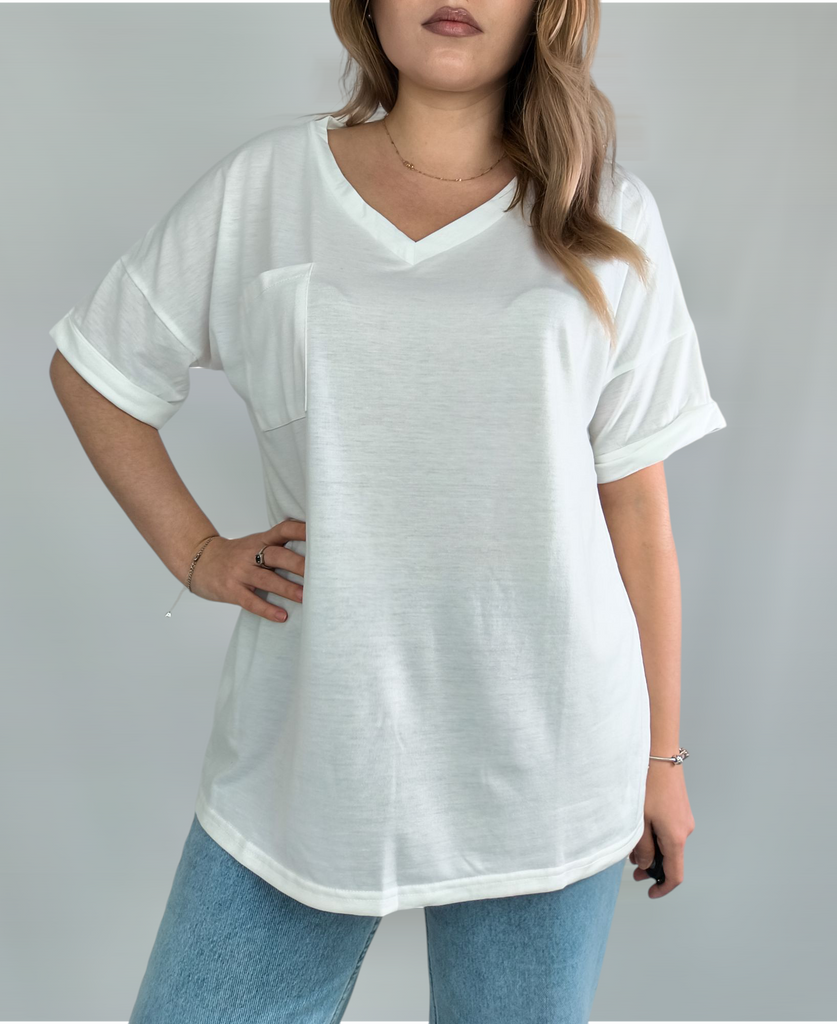 Plus Size Women's Summer V-Neck Pocket T-Shirt Short Sleeve Loose Top