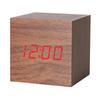 LED Voice-Controlled Digital Alarm Clock - Silent, Luminous, Square Wooden Design for Bedroom