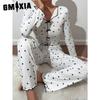 GMXIA Homewear Love Print Long-sleeved Lapel Pyjamas Women Can Be Worn Outside Trousers Two-piece Set
