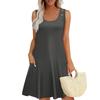 Summer Dresses For Women Beach Boho Sleeveless Printing Flowy Pocket Tshirt Tank Sundresses