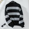 Autumn Winter Vintage Stripe Pullover Knitwear Top Loose Long Hooded Stand Collar Sweater