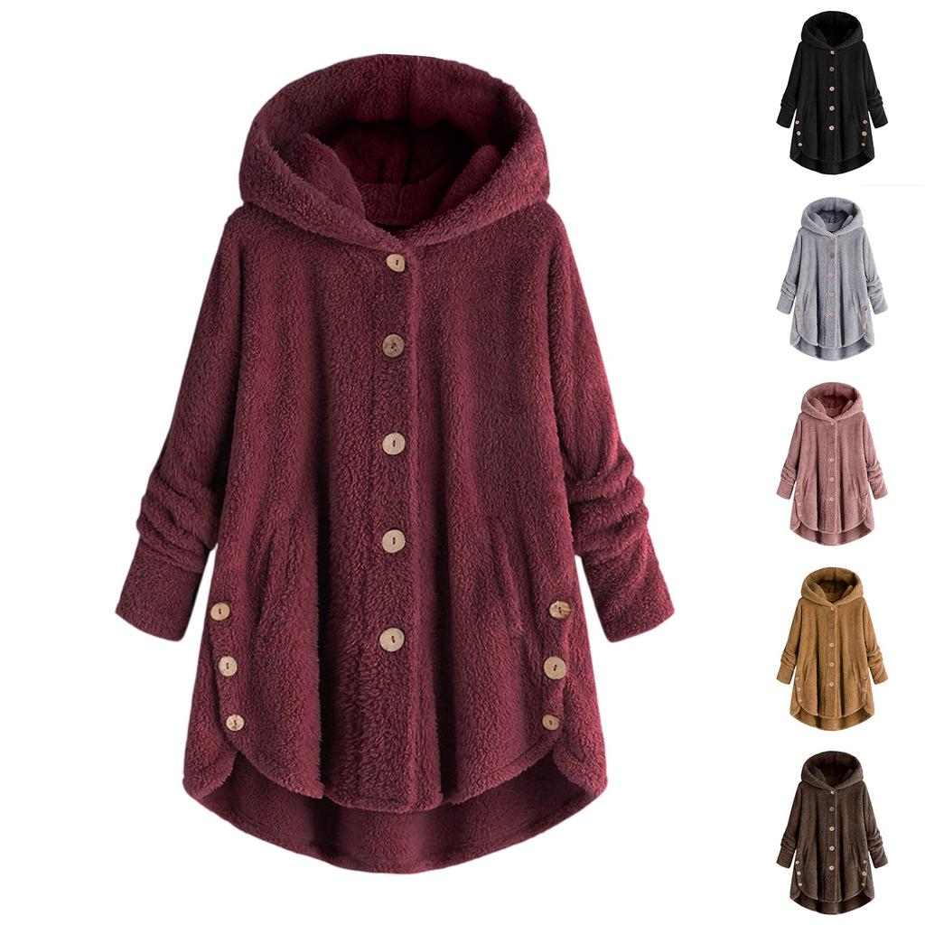 Women's Casual Fashion Button Plush Irregular Solid Color Long Sleeve Jacket