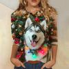Women's Fashionable And Casual Three-quarter Sleeve Christmas Printed Round-neck Top
